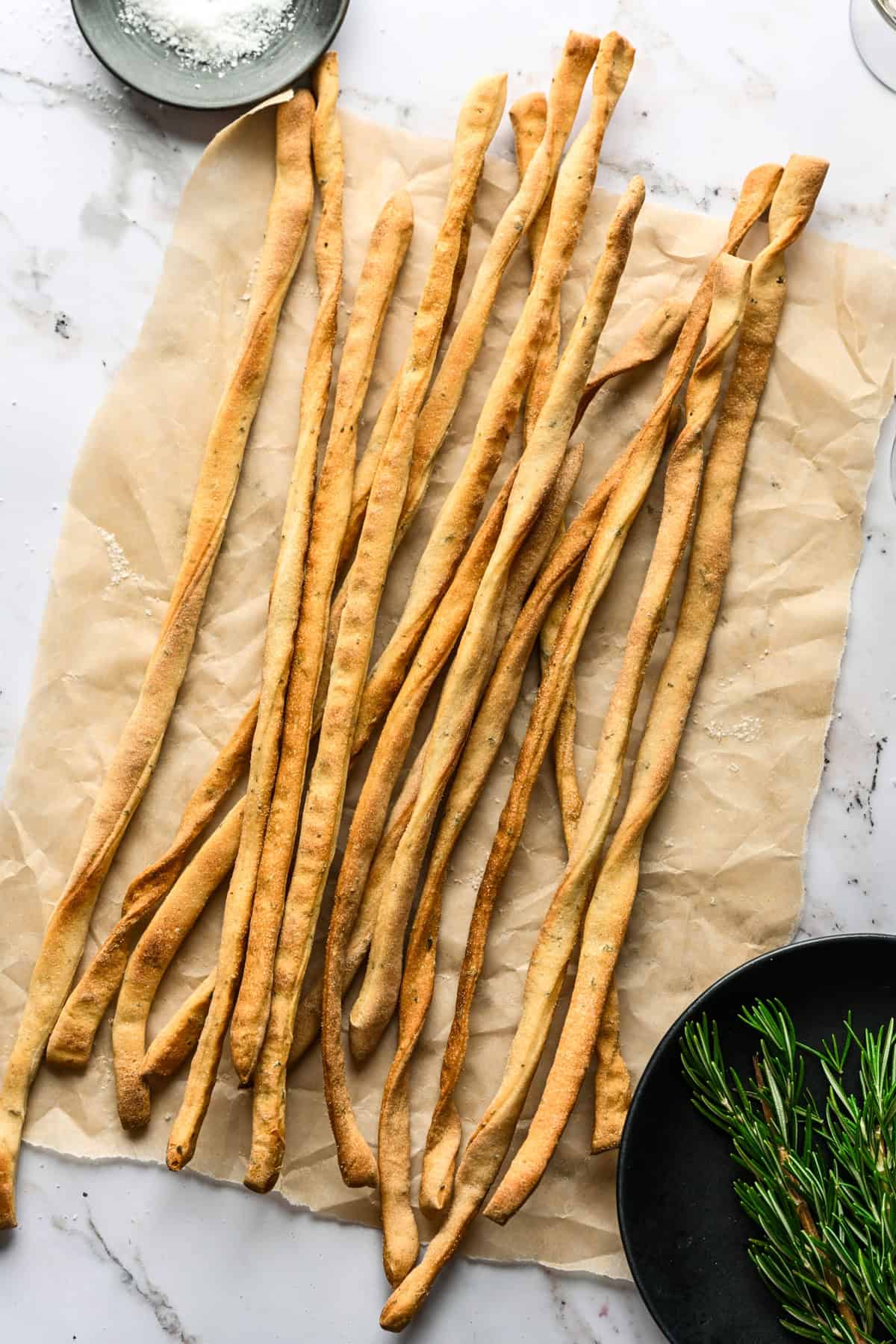 These Grissini (Italian breadsticks) are crunchy, salty, and savory. They're the perfect addition to charcuterie boards and a great companion for almost any dinner!